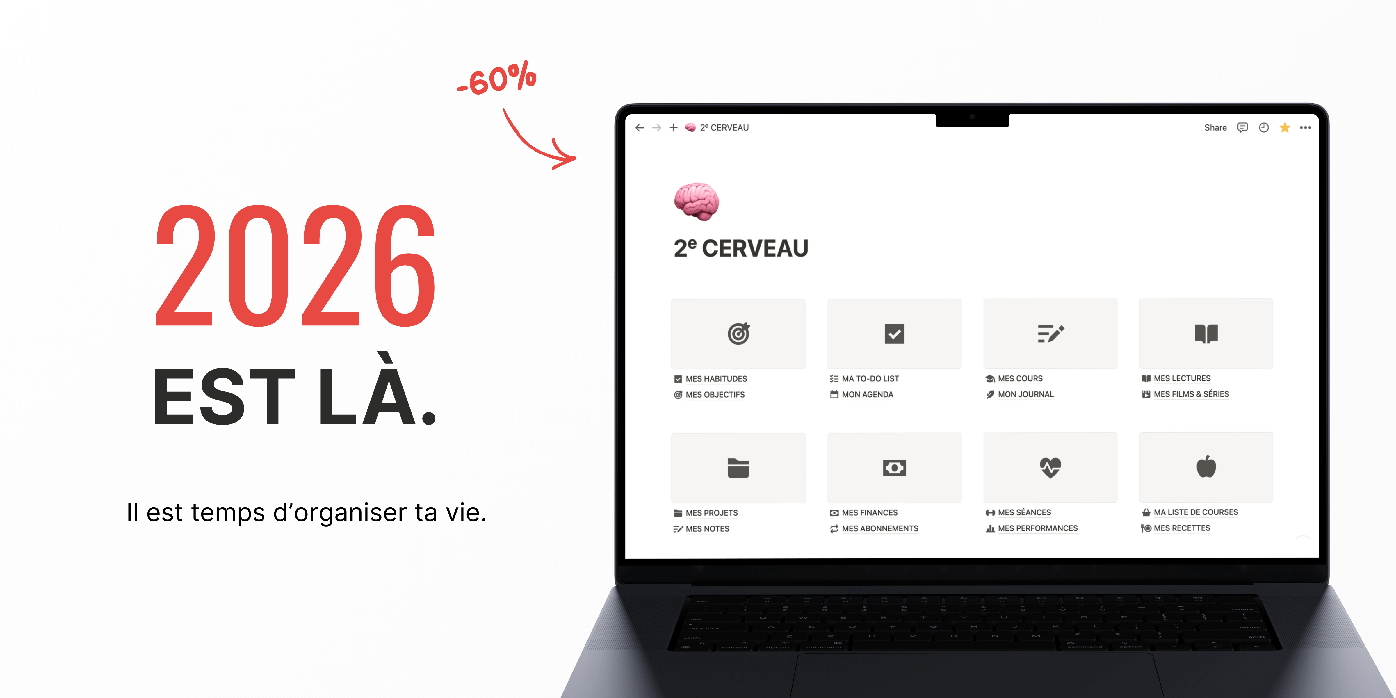 Bien plus qu'un simple template Notion... le 2ᵉ CERVEAU est un véritable système d’organisation tout‑en‑un.