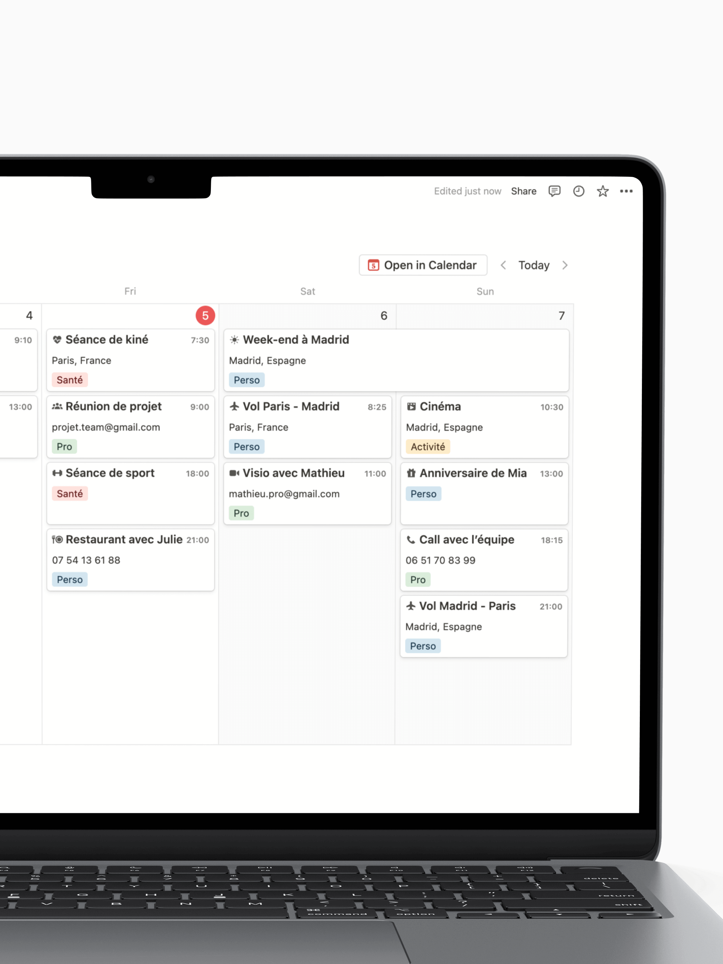 Toute votre vie (pro comme perso), parfaitement organisée au même endroit.