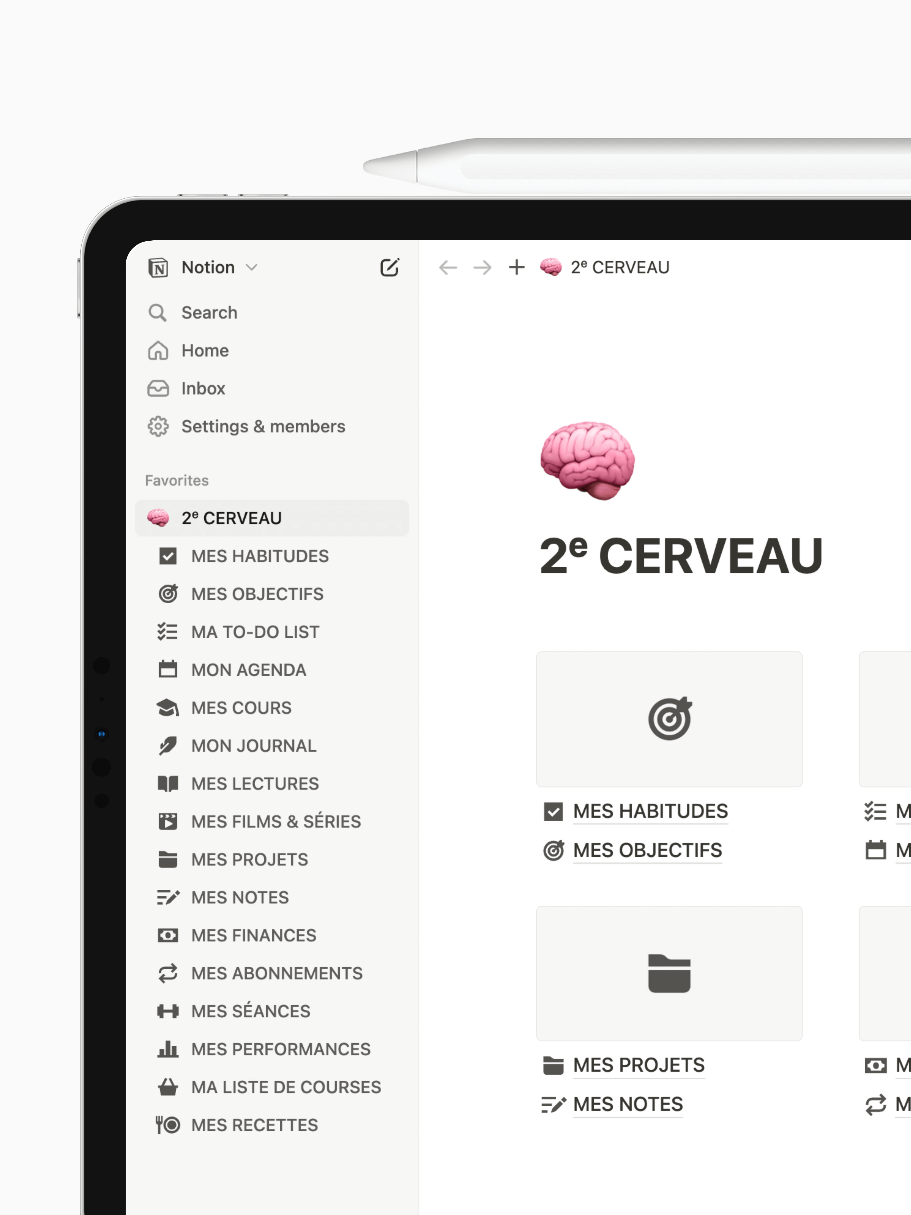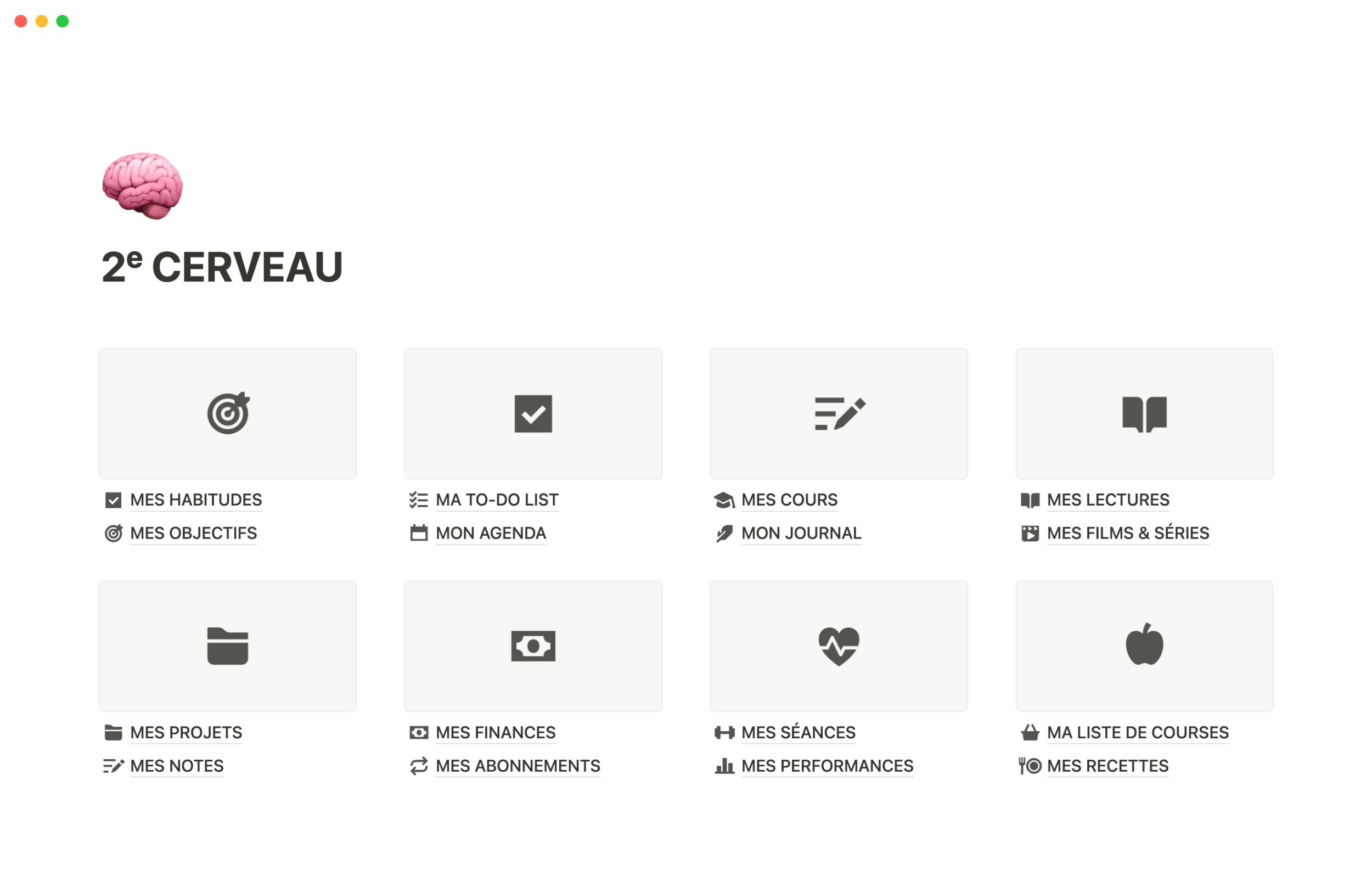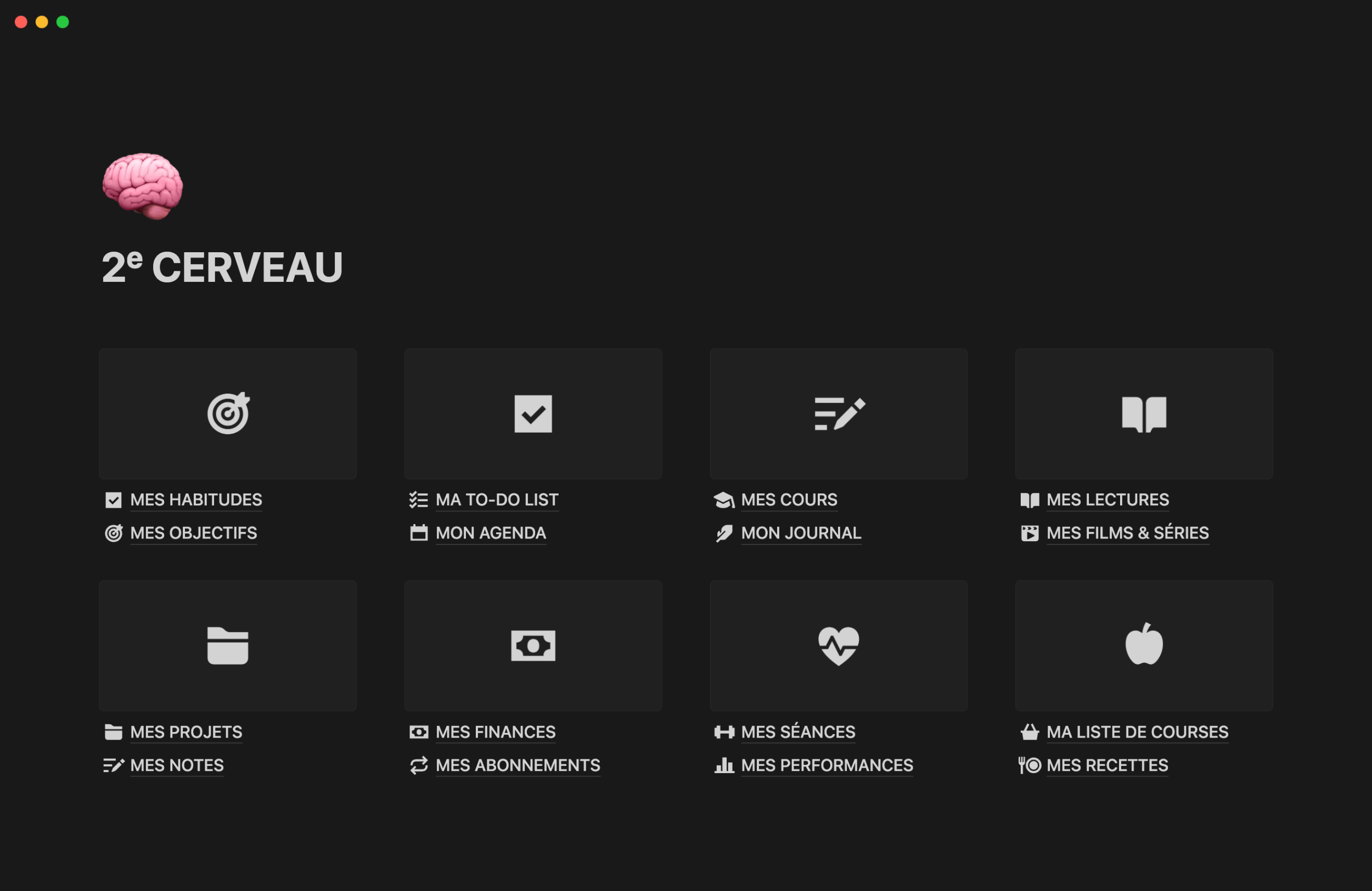 Bien plus qu'un simple template Notion... le 2ᵉ CERVEAU est un véritable système d’organisation tout‑en‑un.