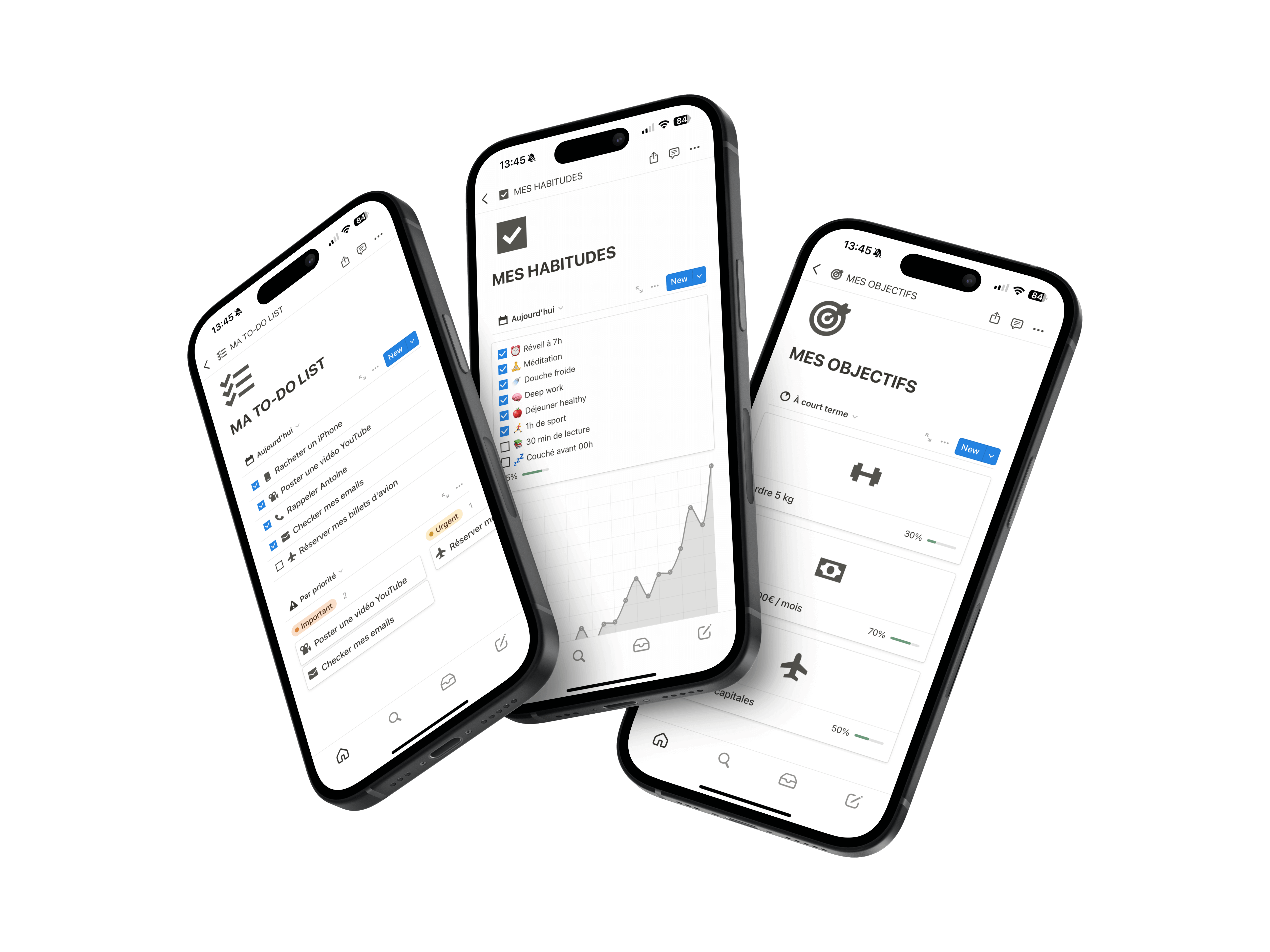Vos habitudes, vos objectifs, votre to‑do list, votre agenda, vos projets, vos notes, vos finances, …
