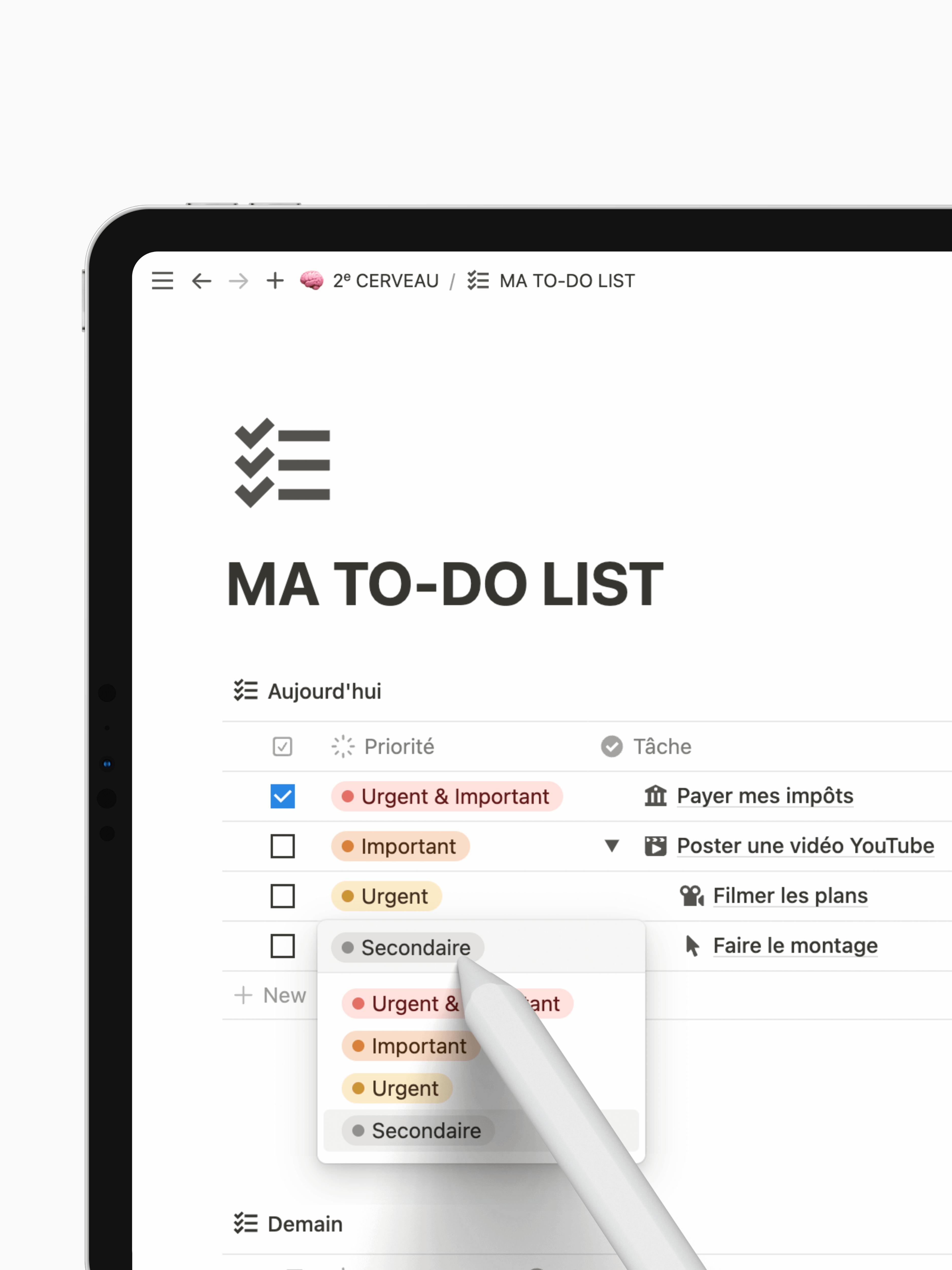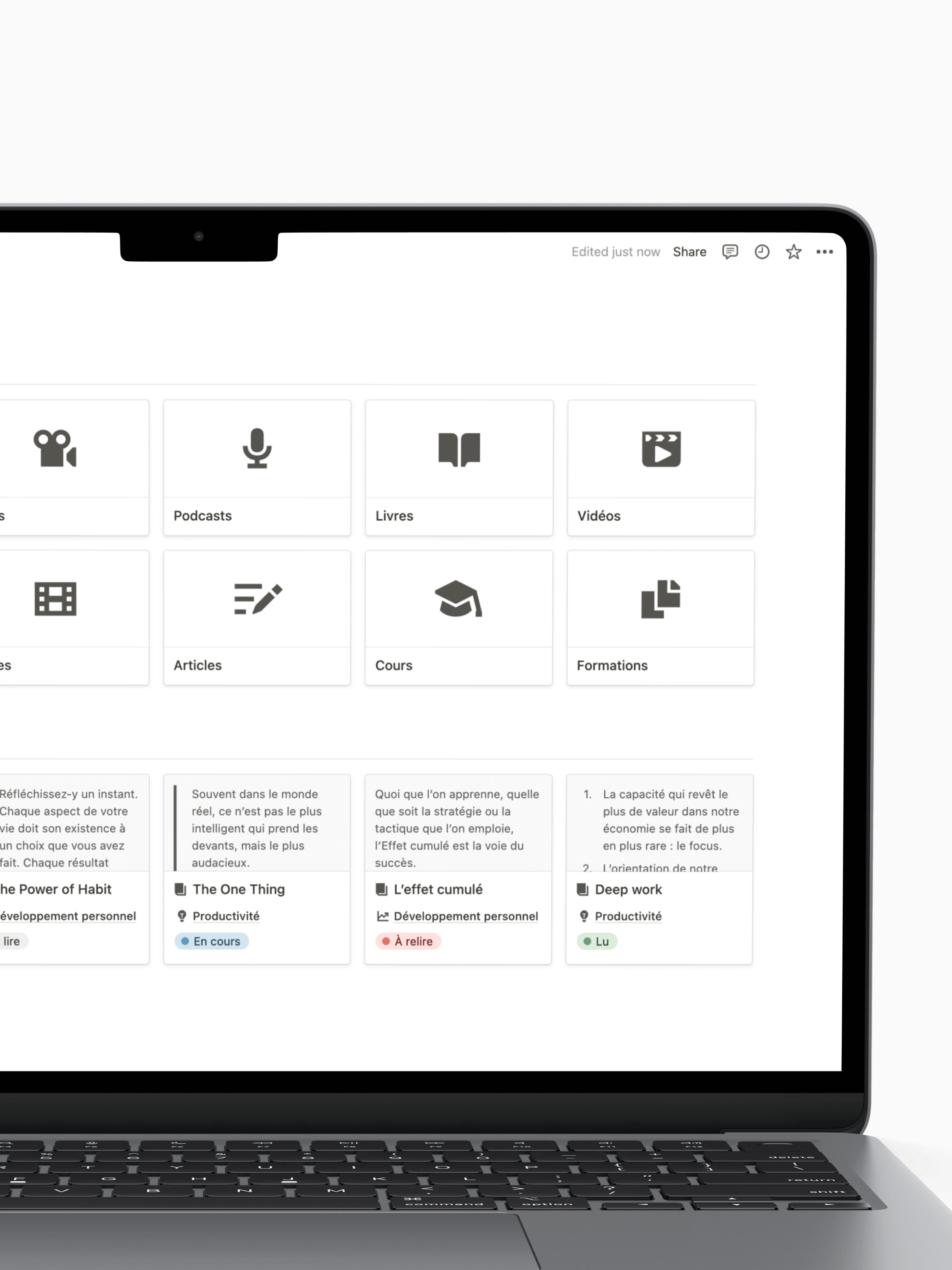 Le 2ᵉ CERVEAU est construit sur Notion, qui est disponible sur ordinateur, tablette et téléphone. Tout est synchronisé.